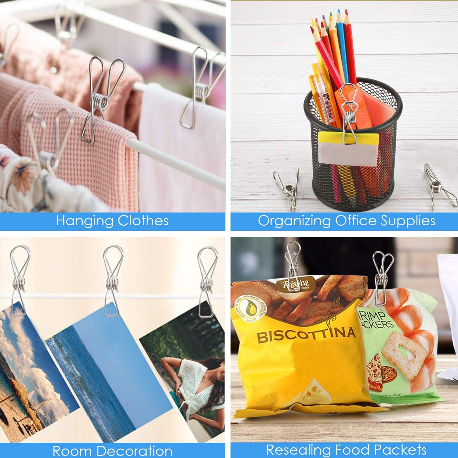 5.USEFUL & VERSATILE: These heavy duty clothespins are available in a pack of 40 and are ideal for use in the kitchen, laundry room, backyard, office, outdoor and even decoration. You can use these utility clips for drying clothes, re-sealing food packets, tidying files, decorating room, hanging pictures and much more.